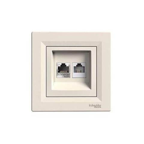 1 kép SCHNEIDER Asfora Telefon és számítógép aljzat 1-es, komplett, bézs