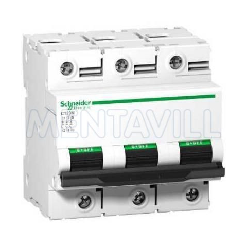 Kismegszakító 3C 100A 10kA C120N ACTI9 A9N18367 Schneider ACTI9 C120N kismegszakító, 3p, C, 100A. termékcsalád: C120, Acti 9 - termék neve: C120 - termék vagy komponens típusa: kismegszakító - készülék rövid megnevezése: C120N - készülékalkalmazás: