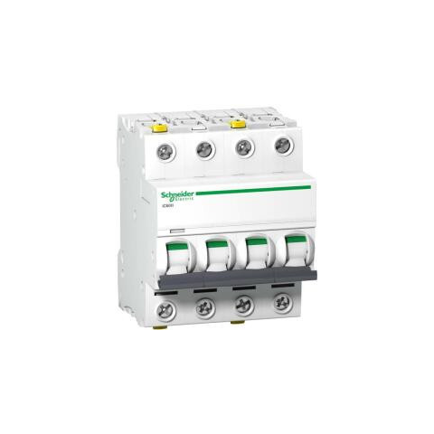 Kismegszakító 4C 25A 10kA iC60H ACTI9 A9F07425 Schneider \nACTI9 iC60H kismegszakító, 4p, C, 25A. készülékalkalmazás: elosztás - termékcsalád: Acti 9 - termék vagy komponens típusa: kismegszakító - készülék rövid megnevezése: iC60H - hálózat típusa: AC,