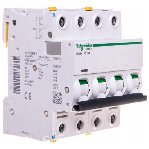 1 kép Schneider Electric Schneider A9F04716 3P+N C 16A 6kA iC60N kismegszakító (A9F04716)