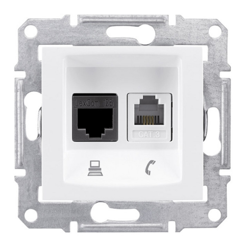 1 kép Schneider Electric Schneider SDN5100121 SEDNA fehér RJ11/RJ45 Cat5e UTP kombinált aljzat (SDN5100121)