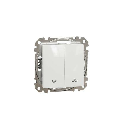 A Schneider Electric Sedna Design & Elements sorozatának fényes fehér színű redőnykapcsolója megbízható és esztétikus megoldást kínál motoros redőnyök vagy árnyékolók egyszerű, kézi vezérlésére. A kapcsoló két különálló billentyűt tartalmaz FEL és LE jelö