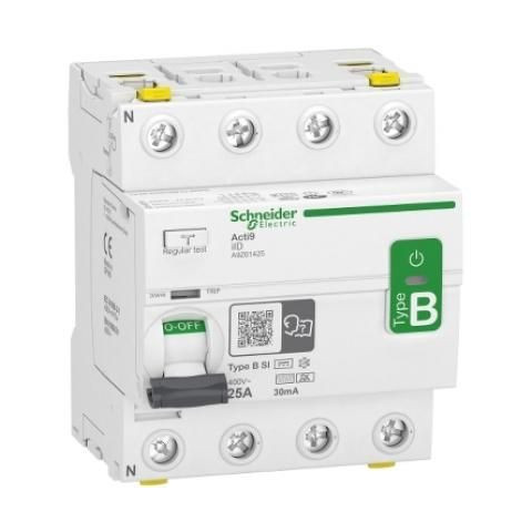 A Schneider Electric Acti 9 iID A9Z61425 típusú áram-védőkapcsoló (RCCB) kiemelkedő védelmet biztosít az elektromos hálózatok számára. Ez a 4 pólusú, 25 amper névleges áramerősségű, B-SI típusú készülék különösen megbízható működést garantál speciális alk
