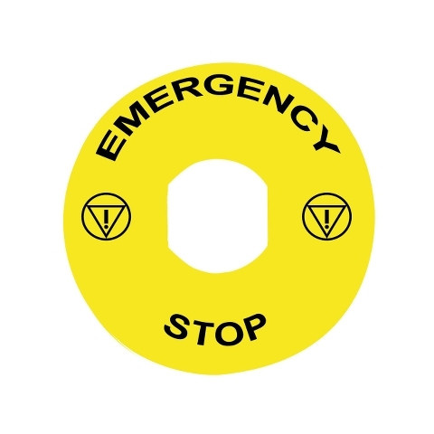 A Schneider Electric Harmony XB4 termékvonalhoz tartozó ZBY8330 kódszámú felirati tábla kiváló választás ipari környezetben használt vészleállító gombok egyértelmű megjelölésére. Ez a sárga színű, műanyagból készült, kör alakú jelölőelem 90 mm átmérőjével