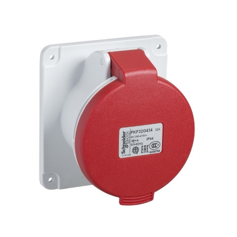 A Schneider Electric Mureva PK termékcsaládba tartozó PKF16G435 ipari aljzat kiváló minőségű, panelre szerelhető megoldást kínál az ipari környezet elektromos csatlakoztatási igényeihez. Ez a 16 amper névleges áramerősségű, 3P+N+E pólusú, 400V-os ipari al