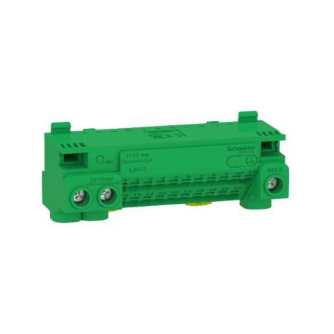 A Schneider Electric Linergy sorozatú LGYT1E24 földelő csatlakozóblokkja kiváló minőségű elektromos kapcsolóelemként szolgál modern villanyszerelési rendszerekben. Ez a zöld színű, kompakt kialakítású termék ideális megoldást nyújt földelési kapcsolatok k
