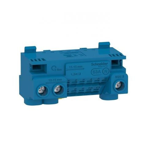 A Schneider Electric Linergy LGYT1N14 típusú neutral csatlakozóblokk egy professzionális villamos elosztó komponens, amely kiváló megoldást nyújt lakó- és kisebb kereskedelmi épületek villanyszerelési projektjeihez. Ez a kék színű, modern kialakítású csat