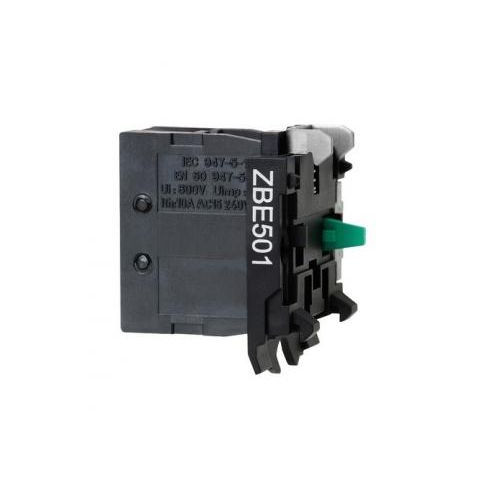 Harmony XB4/XB5 érintkező blokk, 1NO, nagyteljesítményű, 10A, csavaros csatlakozó ZBE501 Schneider Egyes kontaktblokk fej egységhez Ø22 1NO csavaros csatlakozás. termékcsalád: Harmony XB4, Harmony XB5 - termék vagy komponens típusa: érintkezőtömb - ké