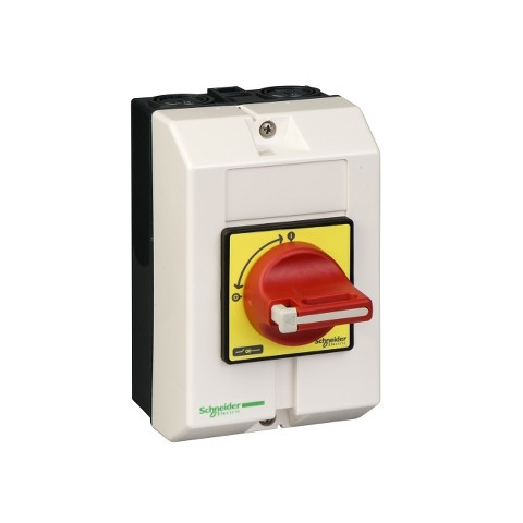 VCF0GE Komplett tokozott fő- és vészleállító kapcsoló 20A Schneider Zárt házú szakaszolókapcsoló Vario VCF, 3-pólusú, 20A. termékcsalád: TeSys - termék neve: TeSys VARIO - készülék rövid megnevezése: VCF - teljesítmény szint: nagy teljesítményű - fo