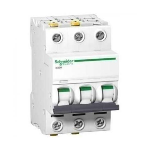 Kismegszakító 3D 6A 10kA iC60H ACTI9 A9F08306 Schneider \nACTI9 iC60H kismegszakító, 3p, D, 6A. készülékalkalmazás: elosztás - termékcsalád: Acti 9 - termék vagy komponens típusa: kismegszakító - készülék rövid megnevezése: iC60H - hálózat típusa: AC, D