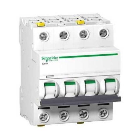 Kismegszakító 4C 40A 10kA iC60H ACTI9 A9F07440 Schneider \nACTI9 iC60H kismegszakító, 4p, C, 40A. készülékalkalmazás: elosztás - termékcsalád: Acti 9 - termék vagy komponens típusa: kismegszakító - készülék rövid megnevezése: iC60H - hálózat típusa: AC,