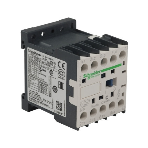 Mágneskapcsoló 220/230V 50/60Hz 9A LC7K09004M7 Schneider \nMágneskapcsoló 220/230V 50/60Hz 9A. termékcsalád: TeSys - termék vagy komponens típusa: mágneskapcsoló - termék neve: TeSys K - készülék rövid megnevezése: LC7K - készülékalkalmazás: ellenőrzés