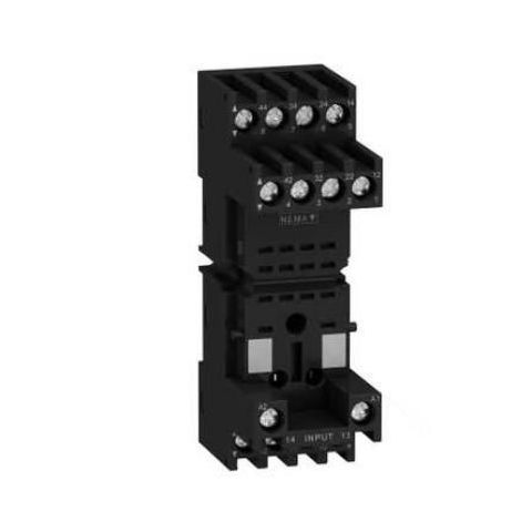 RXZE2M114M relé aljzat RXM2/RXM4-hez, csatlakozós, vegyes kivezetés Schneider Ez a relé foglalat 2 vagy 4 váltóérintkezős Zelio RXM dugaszolható miniatűr relékkel kompatibilis, a vezérlőfeszültség szintjétől függetlenül. A foglalat kis helyet foglal é