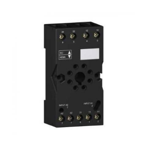 RUZC2M Harmony foglalat, RUM/RE88 univerzális reléhez, hengeres 2CO relékhez, vegyes elrendezésű, csavaros Schneider Ez a relé foglalat 2 C/O hengeres érintkezős Zelio RUM dugaszolható univerzális relékkel kompatibilis, a vezérlőfeszültség szintjétől