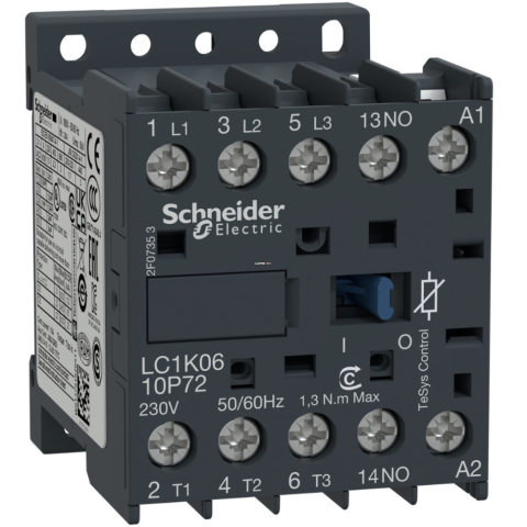 A Schneider Electric TeSys K sorozatú LC1K0610B72 mágneskapcsoló egy kompakt, sokoldalú vezérlőelem, amely elsősorban motorvezérlési alkalmazásokhoz készült. Ez a 3-pólusú kontaktor kiváló választás, ha megbízható és hatékony megoldásra van szükséged kis