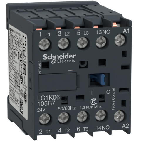 A Schneider Electric TeSys K sorozatába tartozó LC1K06105Q7 mágneskapcsoló egy rendkívül megbízható és kompakt motorvezérlő eszköz, amely ideális választás olyan alkalmazásokhoz, ahol korlátozott a rendelkezésre álló hely, mégis szükség van a nagy teljesí
