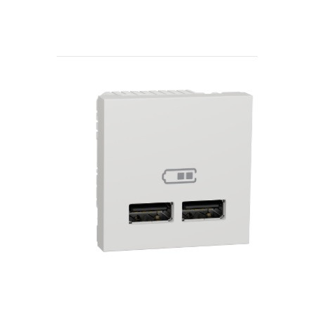UNICA SYSTEM+ Dupla USB töltő, A+A, 2.1A, fehér NU341818 Schneider A Schneider Electric új Unica USB töltő NU341818 fehér színben egy 2 csatlakozós mechanizmus. Ennek az USB-töltőnek a maximális bemeneti teljesítménye 7,5 W. Kimeneti árama 1 A. 100...240V