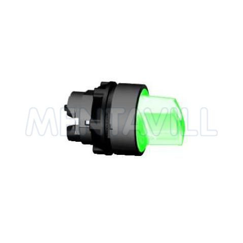 ZB5-AK1433 Világító választókapcsoló fej, 2állású, zöld Schneider \nZöld világító választókapcsoló fej Ø22 2 állású visszatérő. termékcsalád: Harmony XB5 - termékkompatibilitás: beépített LED - készülék rövid megnevezése: ZB5 - szerelési átmérő: 22 mm