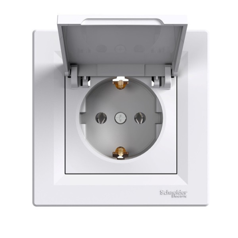 1 kép SCHNEIDER EPH3100121 ASFORA csapfedeles/csavaros/kerettel/fehér 2P+F csatlakozóaljzat