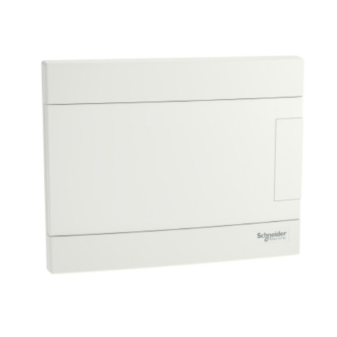 1 kép SCHNEIDER EZ9EUB108 EASY9 EU Kiselosztó, 8 modul, PE+N sínnel, teli ajtóval, süllyesztett