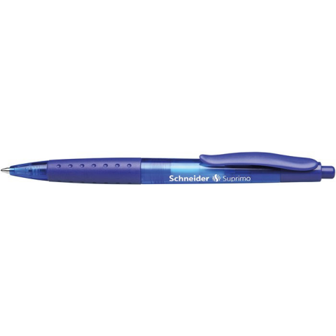 Golyóstoll, 0,5 mm, nyomógombos, SCHNEIDER Suprimo, kék - csúszásgátló gumi fogórész - kényelmes, műanyag klip - nyomógombos tollszerkezet - könnyedén siklik a papíron - egyenletes tinta áramlás segíti elő a kényelmes használatot - vízálló tinta, dokum