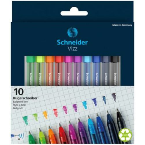 Vizz , vagyis színes, gyors, nagyon tartós és fenntartható. Ez az írószer készlet, biztosan színt visz az életébe! -nagyszerű írásérzet a Schneider által kifejlesztett, innovatív Gelco® technológiának köszönhetően, mely a zselés- és a golyóstoll tulajdonságait ötvözi -kopásálló rozsdamentesacél tollhegy, amely garantálja a tinta könnyű és hatékony felhasználását -vonalvastagság: 0,5 mm (M) -átlátszó, színes tolltest, melynek köszönhetően a tinta f