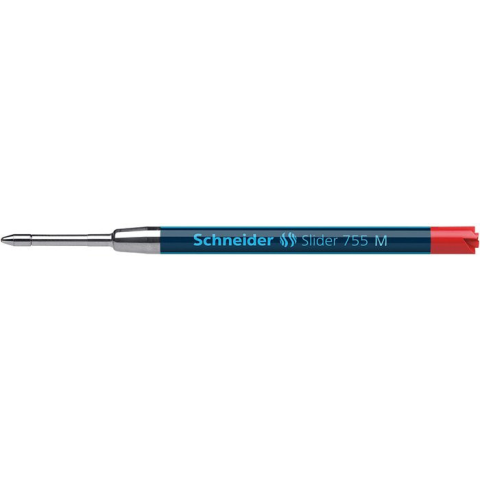 Golyóstollbetét, 0,5 mm, SCHNEIDER Slider 755, piros - „ViscoGlide” tinta: könnyedebb, gördülékenyebb írást biztosít a hagyományos golyóstollakkal szemben - Plug&Play emblémával ellátott tollakkal kompatibilis - rozsdamentes acél hegy - vízálló tinta