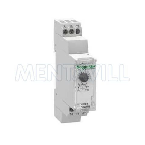 Ez a Zelio RE17R időrelé 0,1 másodperc és 100 óra közötti időtartományban állítható, kimeneti maximális áramerőssége 8 A, 17,5 mm széles, és 24 V DC, 24...240 V AC tápellátással működtethető. 1 db SPDT (egypólusú, kétállású) átkapcsoló érintkező is tartozik hozzá. A piacon elérhető egyik legvékonyabb készülék, amely rugalmasan és egyszerűen szerelhető DIN sínre, miközben ugyanannyi helyet foglal el, mint bármelyik moduláris egypólusú DIN eszköz.