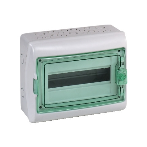 Kiselosztó PE/N-sínnel műanyag 1x 18M falonkívüli szürke IP65 átlátszó ajtó Kaedra Schneider