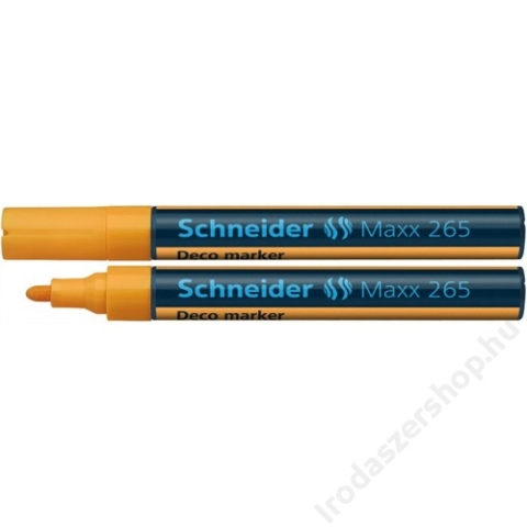 Krétamarker, 2-3 mm, SCHNEIDER Maxx 265, narancssárga (TSC265NS) - minden sima felületre használható, pl. fekete és zöld táblákra, kirakatokra, figyelemfelkeltő táblákra - kúpos hegy - a kupak színe megegyezik a tinta színével - nedves ruhával eltá