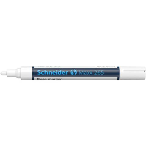 Krétamarker, 2-3 mm, SCHNEIDER Maxx 265, fehér - minden sima felületre használható, pl. fekete és zöld táblákra, kirakatokra, figyelemfelkeltő táblákra - kúpos hegy - a kupak színe megegyezik a tinta színével - nedves ruhával eltávolítható - vonalv
