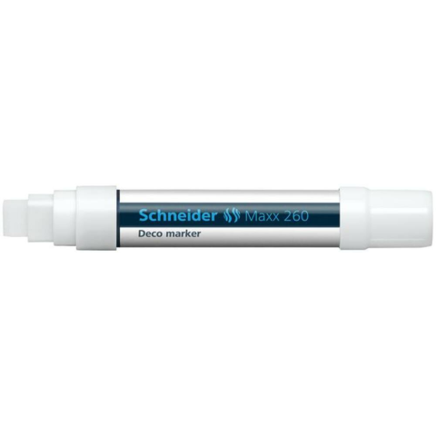 Krétamarker, 5-15 mm, SCHNEIDER Maxx 260, fehér (TSC260FE) - minden sima felületre használható, pl. fekete és zöld táblákra, kirakatokra, figyelemfelkeltő táblákra - vágott hegy - a kupak színe megegyezik a tinta színével - nedves ruhával eltávolít
