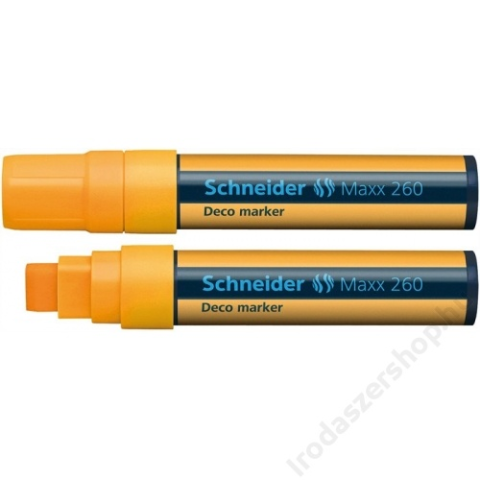 Krétamarker, 5-15 mm, SCHNEIDER Maxx 260, narancssárga (TSC260NS) - minden sima felületre használható, pl. fekete és zöld táblákra, kirakatokra, figyelemfelkeltő táblákra - vágott hegy - a kupak színe megegyezik a tinta színével - nedves ruhával el