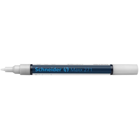 Lakkmarker, 1-2 mm, SCHNEIDER Maxx 271, fehér - szinte minden felületre használható (fém, üveg, kerámia, porcelán, műanyag, gumi, bőr, papír, karton) - 300°C-ig hőálló tinta - kúpos hegy - olajbázisú - vízálló és törlésbiztos, gyorsan szárad - kül