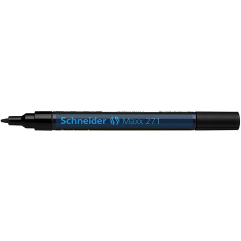 Lakkmarker, 1-2 mm, SCHNEIDER Maxx 271, fekete - szinte minden felületre használható (fém, üveg, kerámia, porcelán, műanyag, gumi, bőr, papír, karton) - 300°C-ig hőálló tinta - kúpos hegy - olajbázisú - vízálló és törlésbiztos, gyorsan szárad - kü