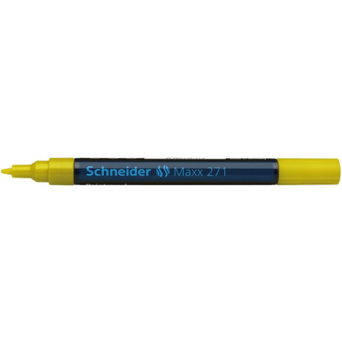 Lakkmarker, 1-2 mm, SCHNEIDER Maxx 271, sárga - szinte minden felületre használható (fém, üveg, kerámia, porcelán, műanyag, gumi, bőr, papír, karton) - 300°C-ig hőálló tinta - kúpos hegy - olajbázisú - vízálló és törlésbiztos, gyorsan szárad - kül