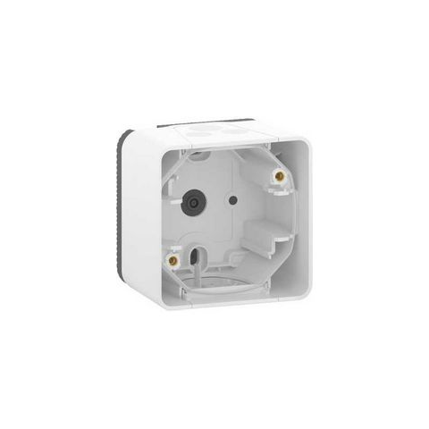 A Schneider Electric Mureva Styl termékcsalád MUR39911 cikkszámú felületre szerelhető egyes kiemelő doboza ideális megoldás mind beltéri, mind kültéri elektromos szerelési munkákhoz. Ez a polárfehér (RAL 9003) színű, kiváló minőségű szerelvénydoboz a Mure