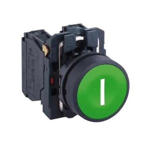 XB5-AA3311 Komplett nyomógomb, zöld, I jellel Schneider Zöld sülly. nyomógomb Ø22 visszatérő 1NO \I\. termékcsalád: Harmony XB5 - termék vagy komponens típusa: komplett nyomógomb - készülék rövid megnevezése: XB5 - fej típusa: szabványos - rögzít