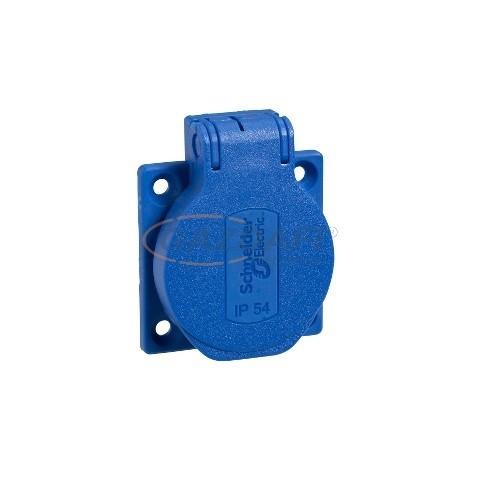 1 kép SCHNEIDER PKS52B PRATIKA Háztartási aljzat, 2P+F, 50x50, oldalsó meghúzással, kék, IP54, német