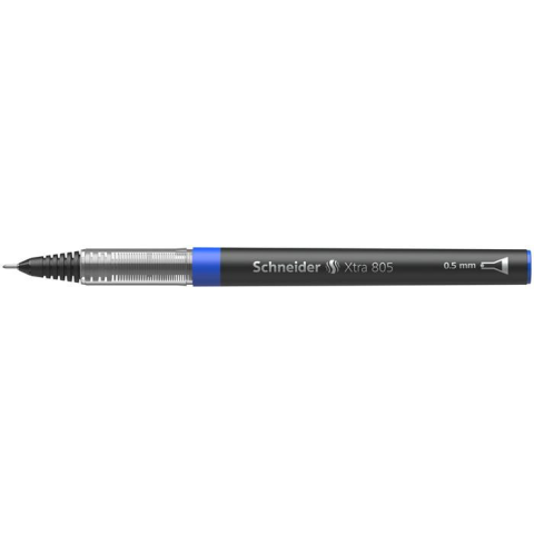 Rollertoll, 0,5 mm, tűhegyű, SCHNEIDER XTRA 805, kék - a tintaszabályzó nagyobb, egyenletesebb írásteljesítményt tesz lehetővé - tűhegy - fémklip - kupakos kivitel - a tinta fogyása követhető az átlátszó tolltesten keresztül - vonalvastagság: 0,5 mm -