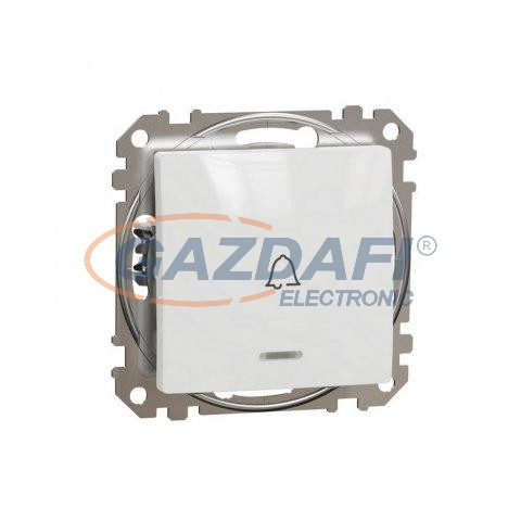 1 kép SCHNEIDER SDD111131L ÚJ SEDNA Egypólusú nyomó, kék jelzőfénnyel, csengőjellel, rugós bekötés, 10A, fehér