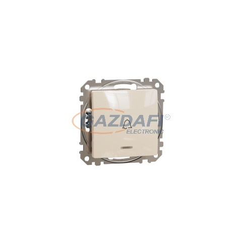 1 kép SCHNEIDER SDD112131L ÚJ SEDNA Egypólusú nyomó, kék jelzőfénnyel, csengőjellel, rugós bekötés, 10A, bézs