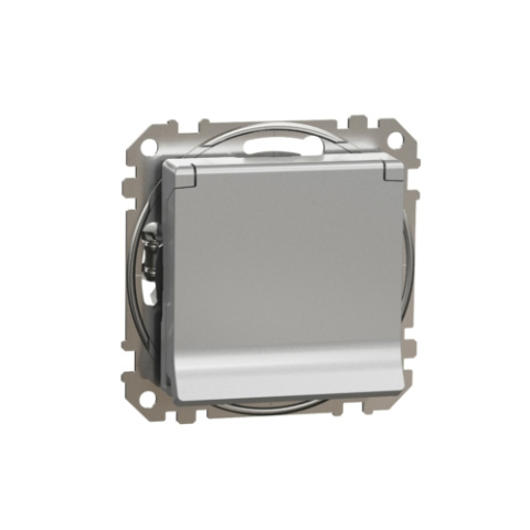 1 kép SCHNEIDER SednaÚj 162 dugalj földelt csapófedéllel gyerekzárral alumínium IP20 süllyesztett Schneider