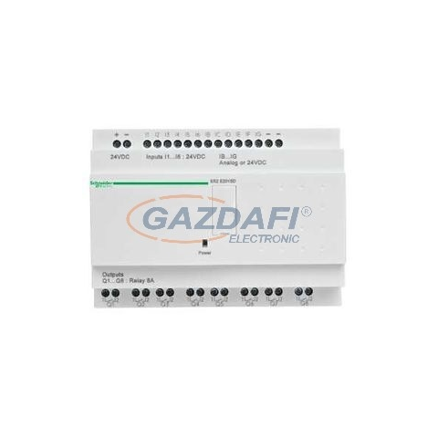 Zelio Logic programozható relé, kompakt, kijelző nélkül, 10 DI + 2 DI/AI, 8 DO relés, belső órával, 24 VDCSCHNEIDER SR2E201BD általános leírása:A relé egy olyan elektromechanikus vagy elektronikus eszköz, amely egy kisebb áramkörrel vezérel egy nagyobb te