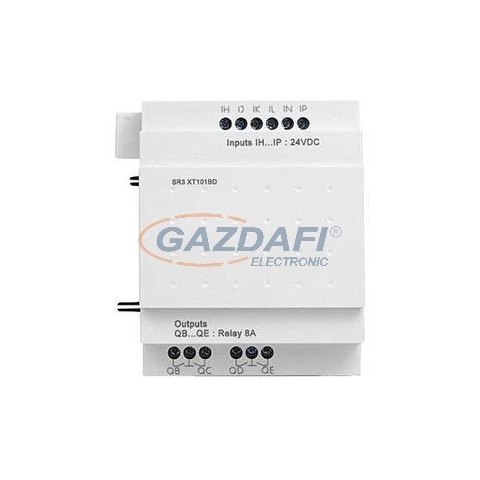 SR3XT101BD Bővítőmodul, 10 I/O, 24VDC Schneider Ez a Zelio Logic SR3 diszkrét I/O bővítőmodul a 24 VDC tápfeszültségű SR3 Zelio Logic készülékekkel kompatibilis. 10 be- és kimenettel, valamint csavaros szorítós csatlakozókkal rendelkezik, könnyed bővítési
