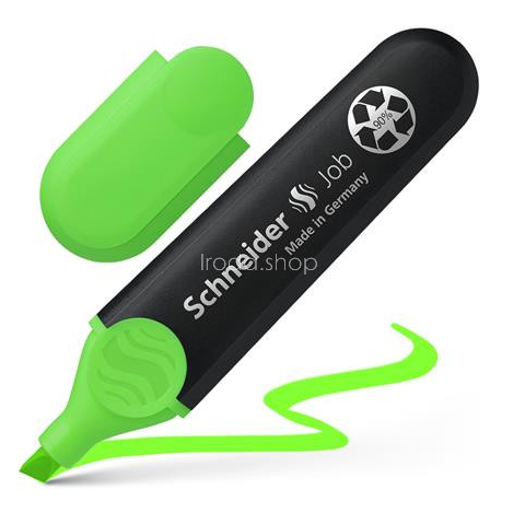 Szövegkiemelő, 1-5 mm, SCHNEIDER Job 150, zöld - vágott hegy - élénk, nem fakuló színek - vízbázisú tinta - normál, fénymásoló és faxpapírhoz is ajánlott - magas tintatartalom a nagyobb hatékonyság érdekében - polipropilén test - klippel ellátott kupak