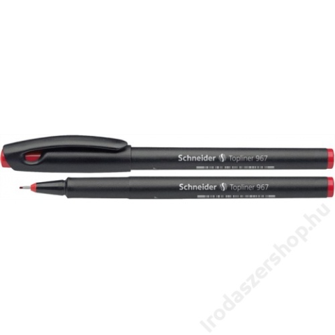Tűfilc, 0,4 mm, SCHNEIDER Topliner 967, piros (TSCTOP967P) - vékony és pontos írás - a rozsdamentes hegy folyamatos írásképet eredményez - vízbázisú tintával töltve - fekete, műanyag tolltest - a tollvég színe megegyezik a tinta színével - vonalvastags