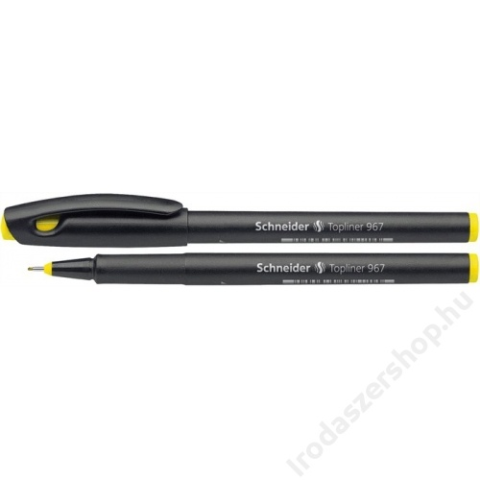 Tűfilc, 0,4 mm, SCHNEIDER Topliner 967, sárga (TSCTOP967S) - vékony és pontos írás - a rozsdamentes hegy folyamatos írásképet eredményez - vízbázisú tintával töltve - fekete, műanyag tolltest - a tollvég színe megegyezik a tinta színével - vonalvastags