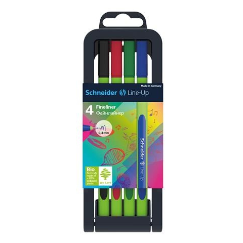 • SCHNEIDER Tűfilc készlet, 0,4 mm, "Line-Up", 4 különböző szín filctoll, marker árgrafikon