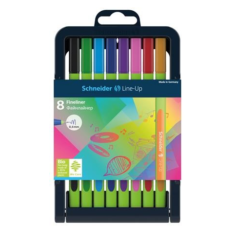 • SCHNEIDER Tűfilc készlet, 0,4 mm, "Line-Up", 8 különböző szín filctoll, marker árgrafikon